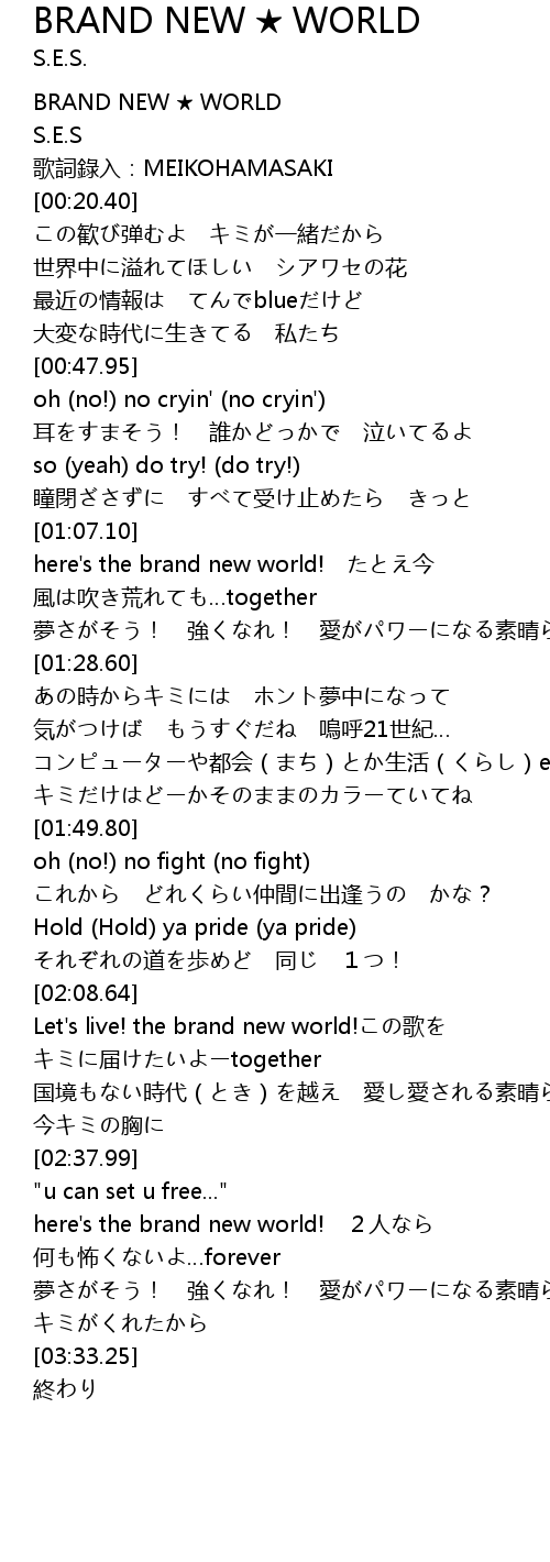 | [00:00.00] | BRAND NEW ★ WORLD |