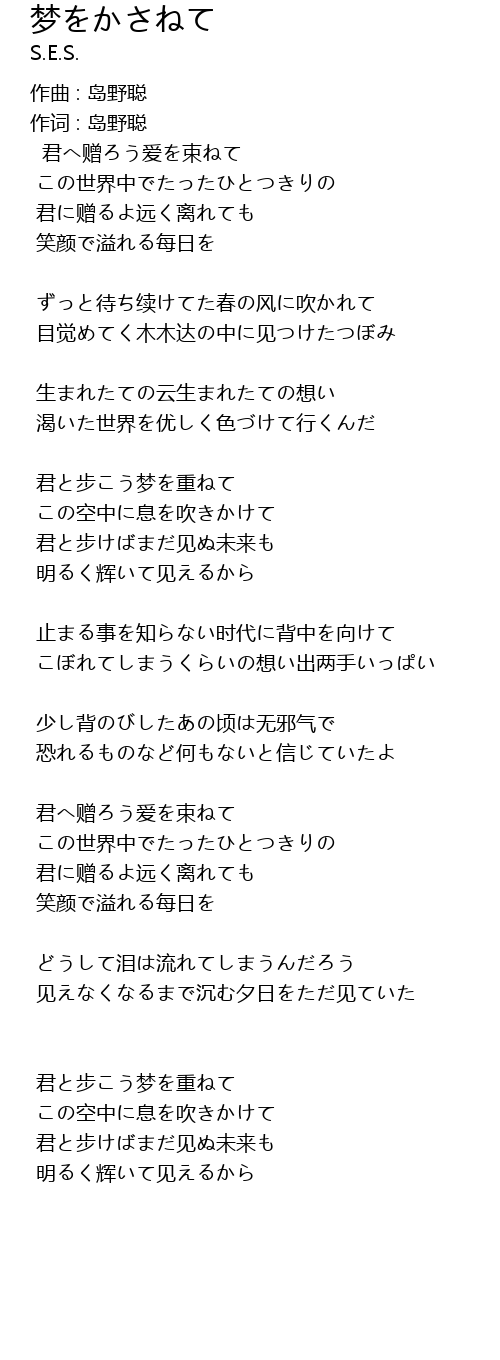 | 作词 : 岛野聪 | |