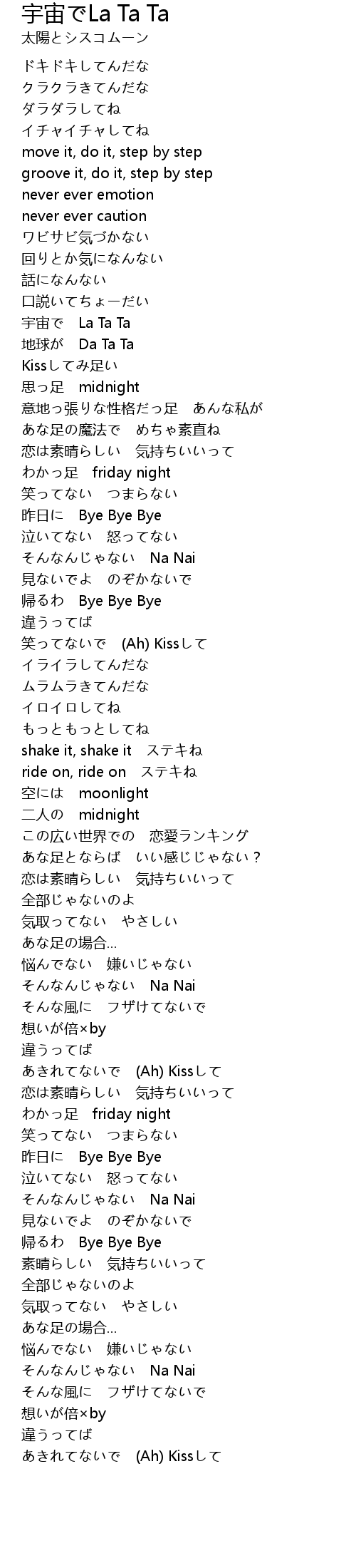 | [01:19.72] | あな足の魔法で めちゃ素直ね |