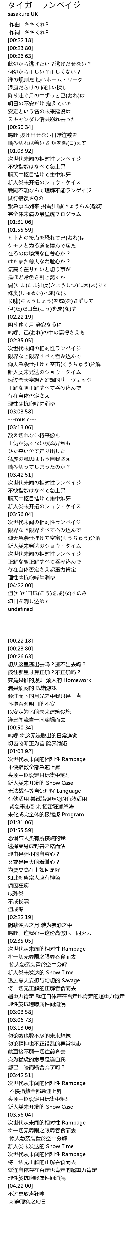 | [00:01.00] | 作词 : ささくれP |