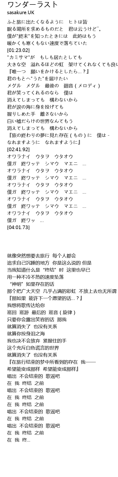 | [03:54.91] | オワラナイ ウタヲ ウタオウ |