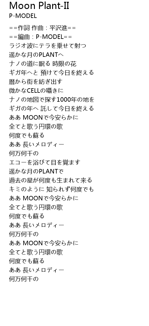 | [00:07.876] | ==編曲:P-MODEL== |
