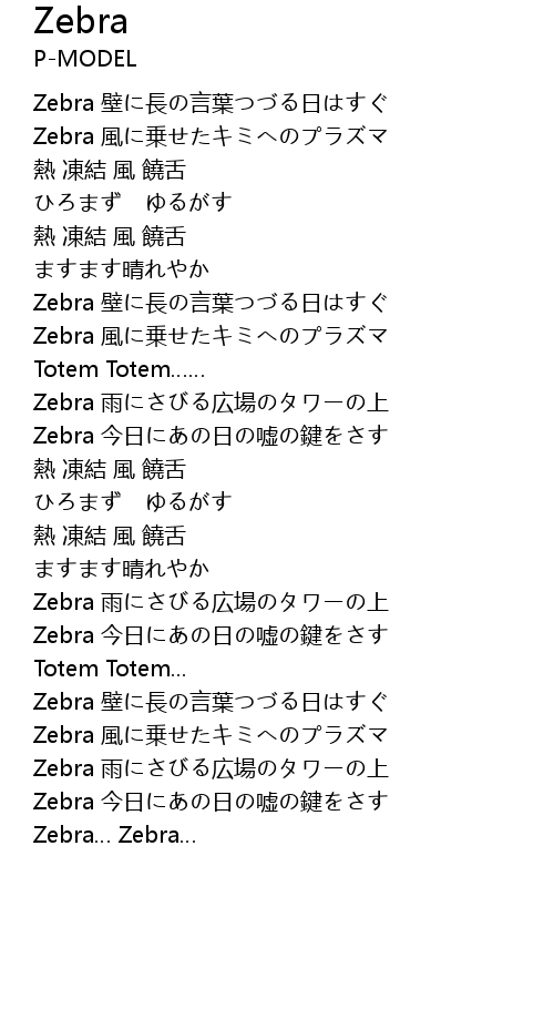 | [00:18.120] | Zebra 壁に長の言葉つづる日はすぐ |