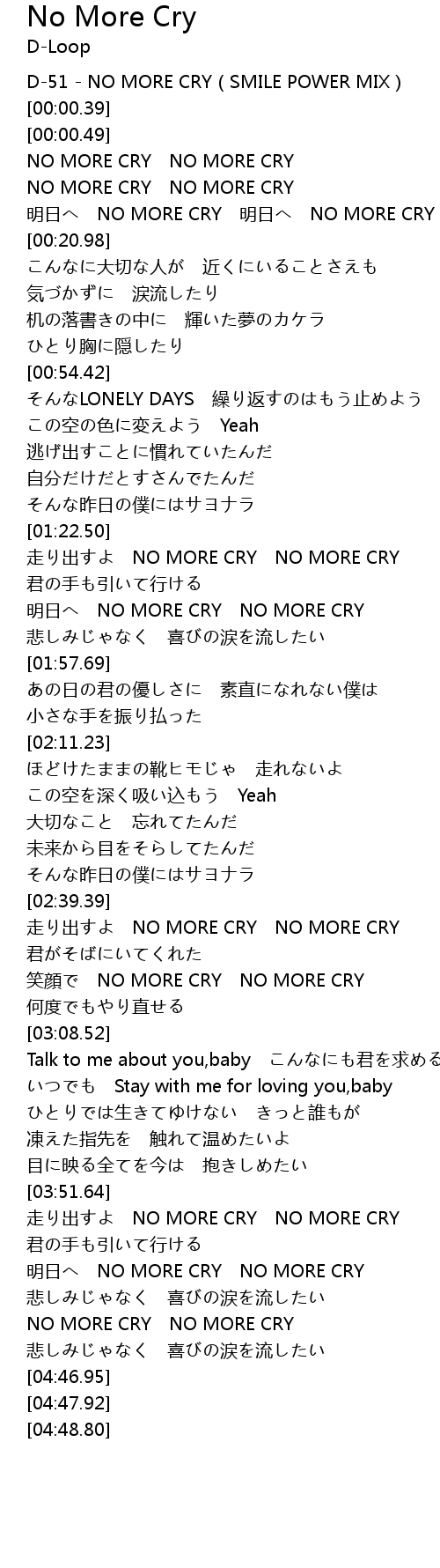 | [00:00.00] | D-51 - NO MORE CRY(SMILE POWER MIX) |