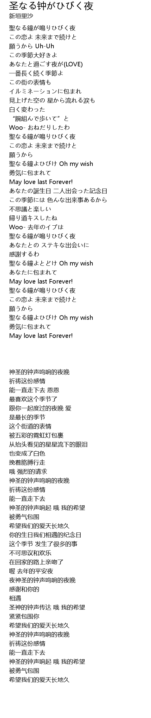 | [04:11.670] | 聖なる鐘よひびけ Oh my wish |