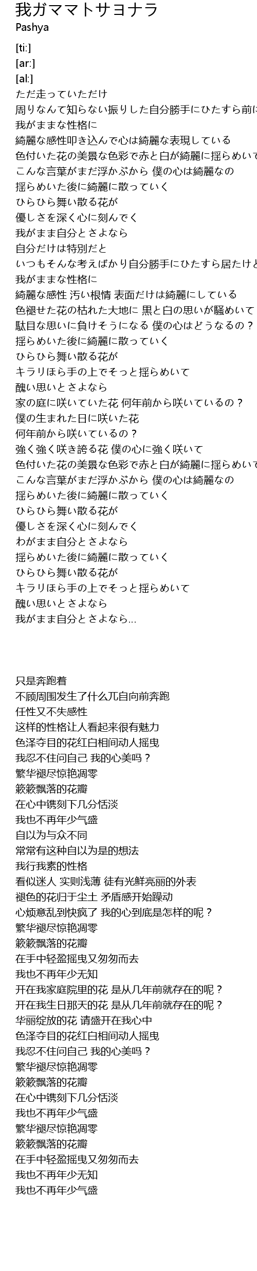 | [00:37.03] | 綺麗な感性叩き込んで心は綺麗な表現している |