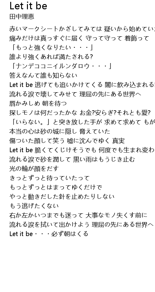 | Let it be 脆くてくじけそうでも 何度でも生まれ変わる | |