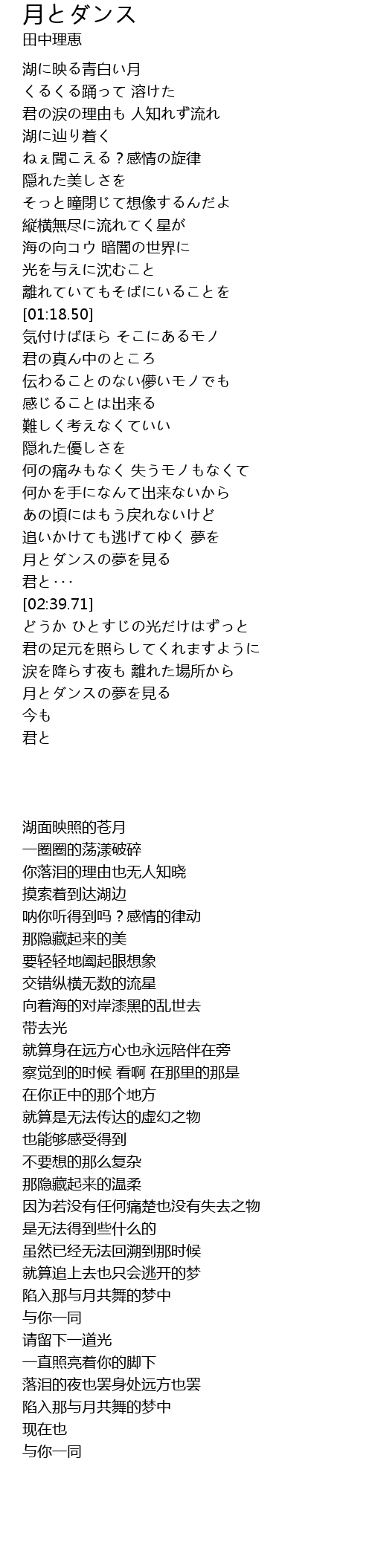 | [02:23.37] | 月とダンスの夢を見る |