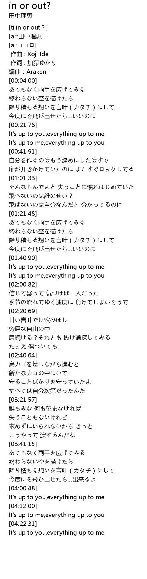| [00:53.62] | 扉が开きかけていたのに またすぐロックしてる |