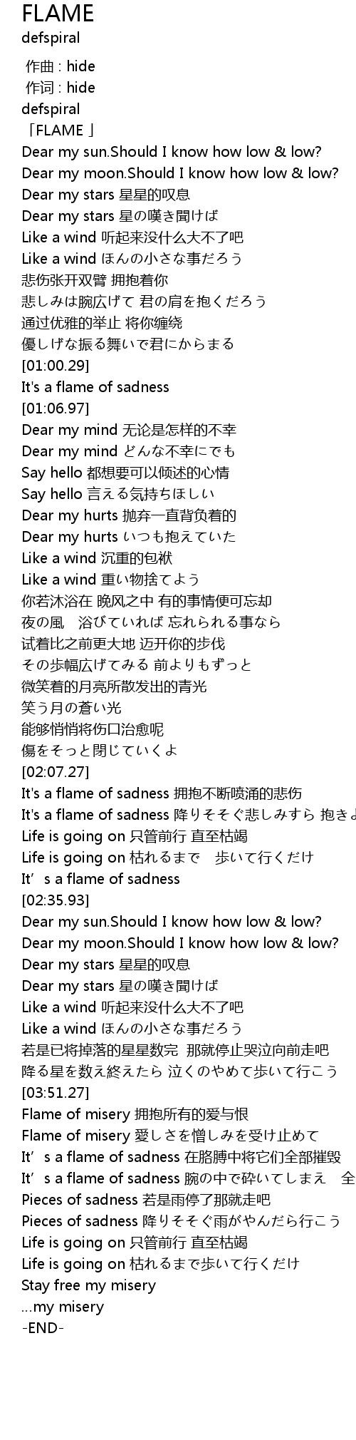 | [03:53.67] | Flame of misery ài zēng shòu zhǐ |