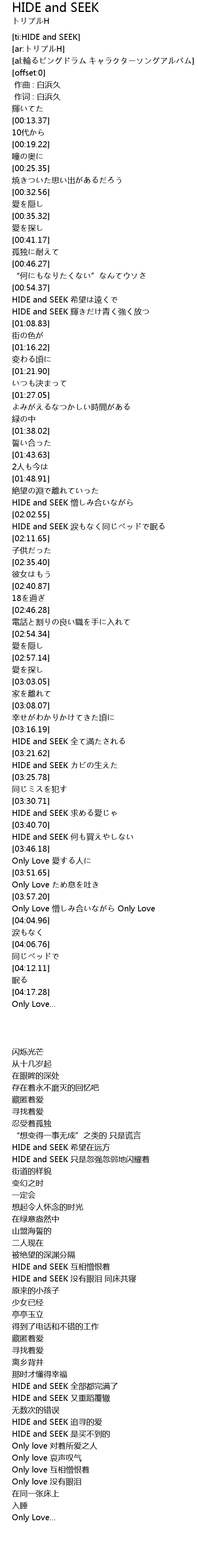 | [03:36.04] | HIDE and SEEK qiú ài |