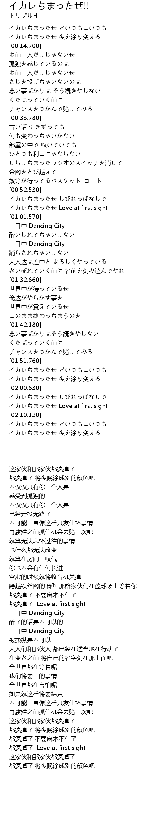 | [02:06.040] | イカレちまったぜ Love at first sight |