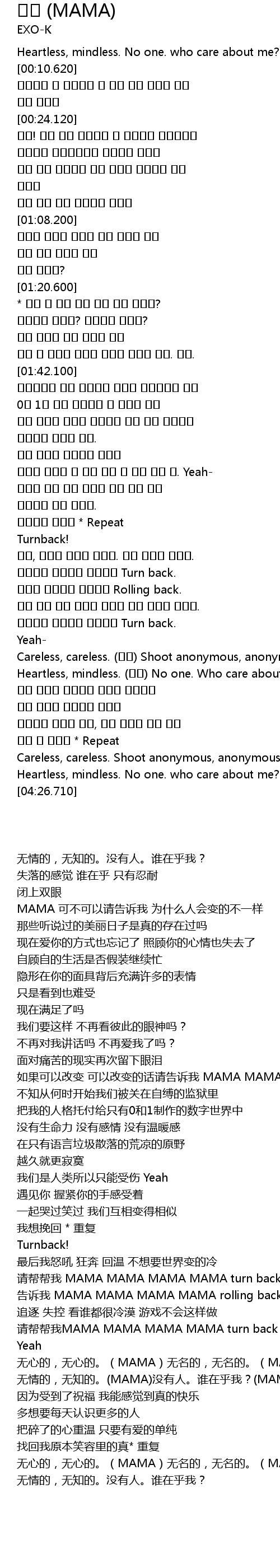 | [03:23.340] | Careless, careless. (마마) Shoot anonymous, anonymous. (마마) |