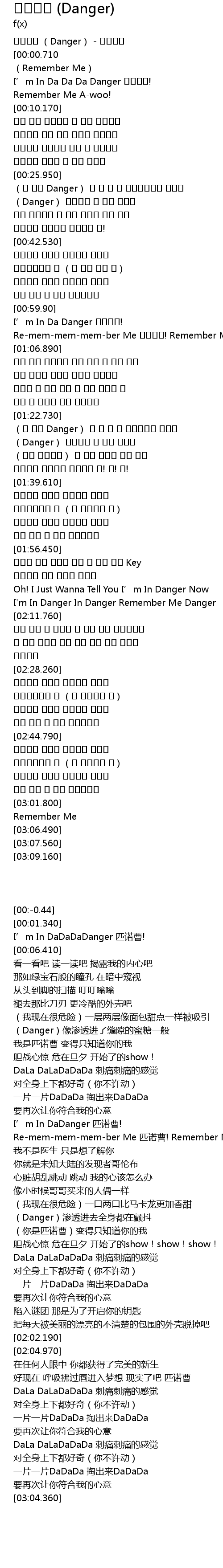| [00:-0.44] | 피노키오 (Danger) - 에프엑스 |