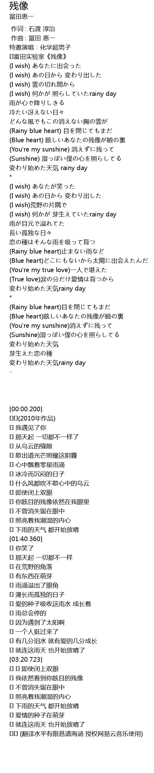 | [02:04.893] | I wish hé yá shēng rainy day |