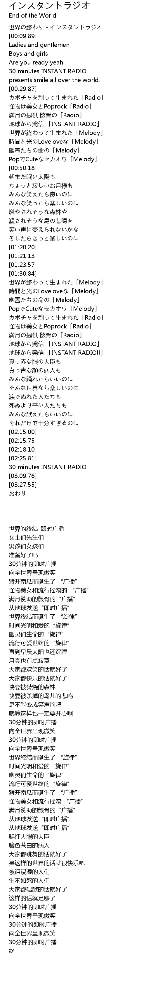 | [00:00.00] | 世界の終わり - インスタントラジオ |
