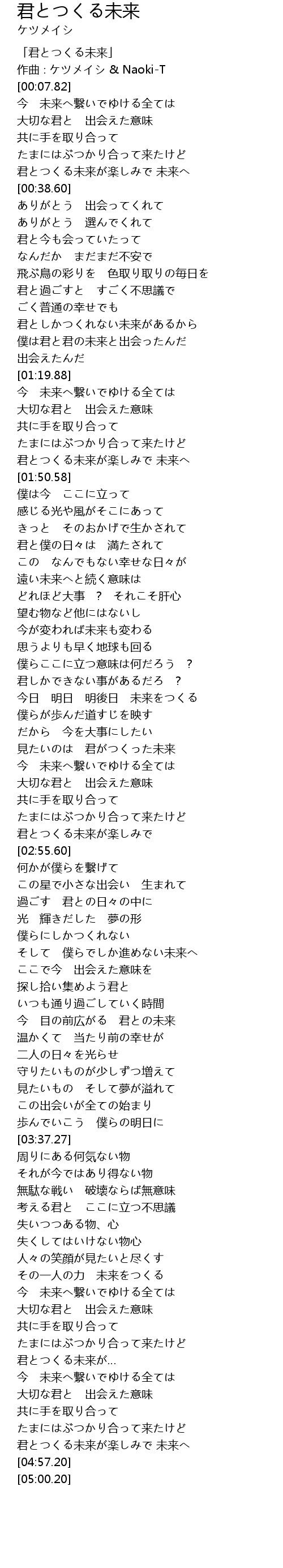 | [00:01.82] | 「君とつくる未来」 |