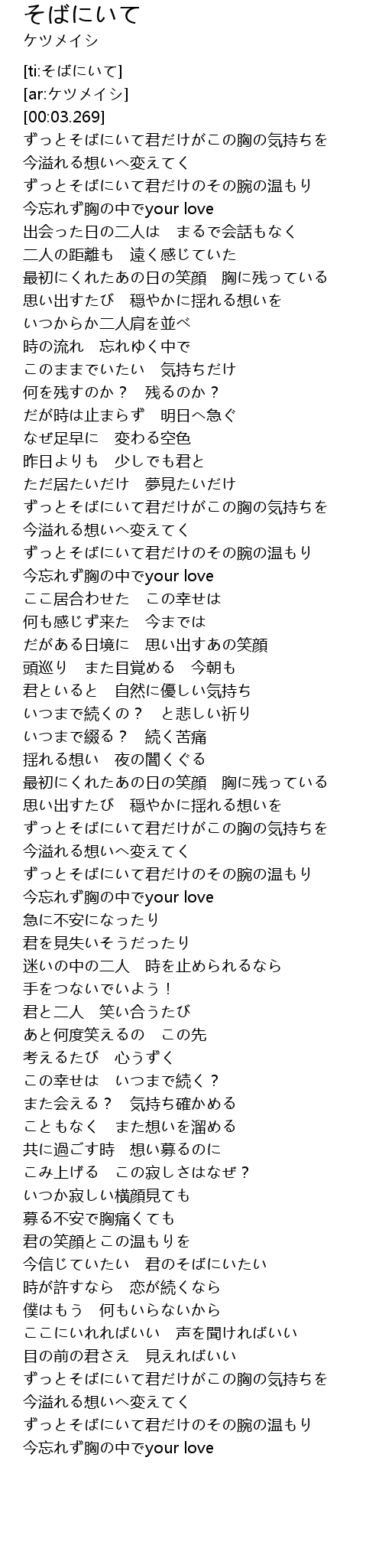 | [05:08.734] | ずっとそばにいて君だけがこの胸の気持ちを |