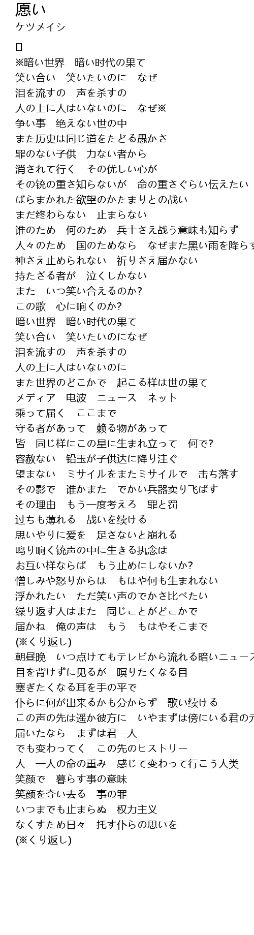 | 皆 同じ样にこの星に生まれ立って 何で? | |