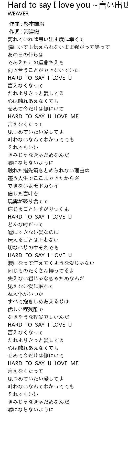 | [03:34.795] | HARD TO SAY I LOVE U |