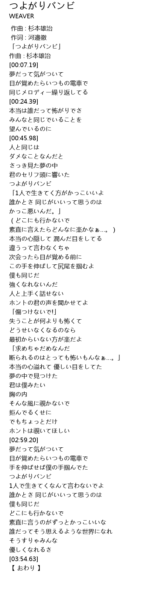 | [03:39.13] | 素直に言うのがずっとかっこいいな |