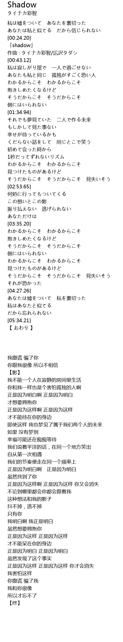 | [00:27.12] | 「shadow」 |