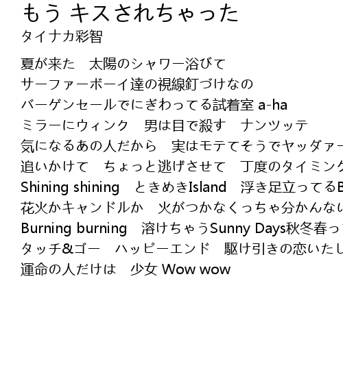 | [01:16.01] | Burning burning 溶けちゃうSunny Days秋冬春ってlovely days |