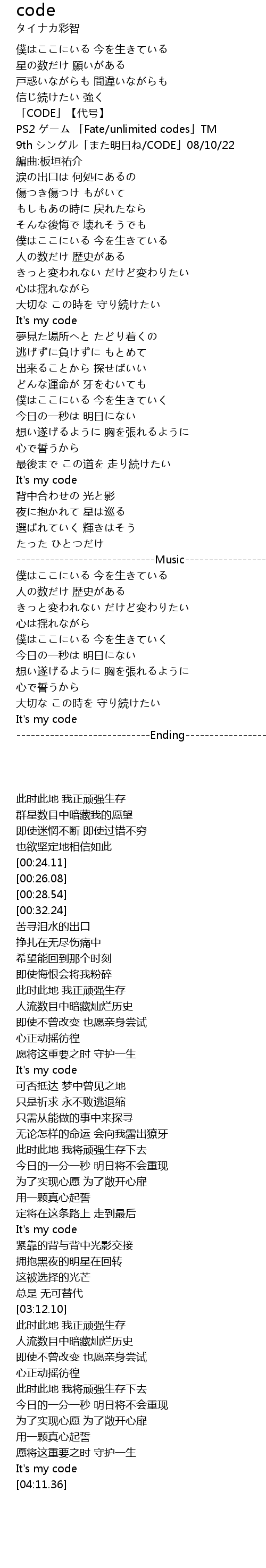 | [00:24.11] | 「CODE」【代号】 |