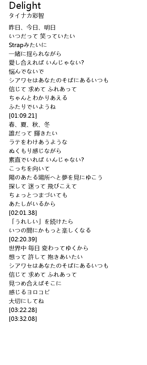 | [02:53.85] | シアワセはあなたのそばにあるいつも |