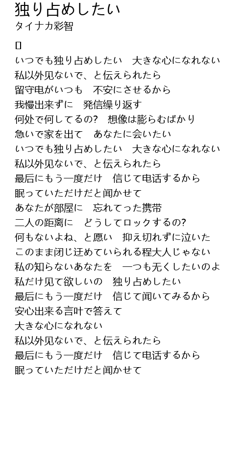 | いつでも独り占めしたい 大きな心になれない | |
