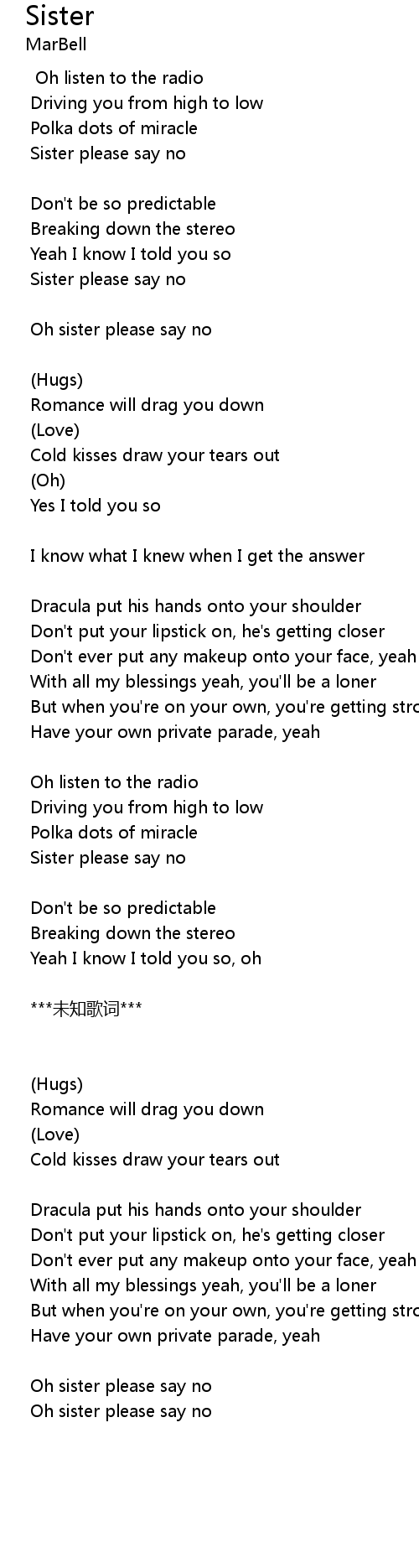 | Oh sister please say no |