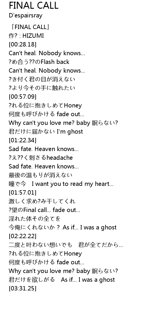 | [00:01.18] | 「FINAL CALL」 |