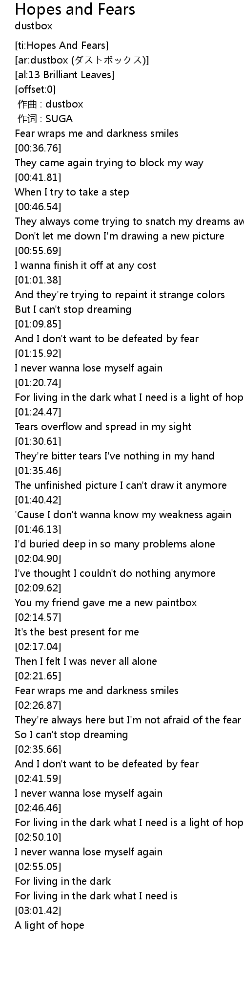 | [ti:Hopes And Fears] | |