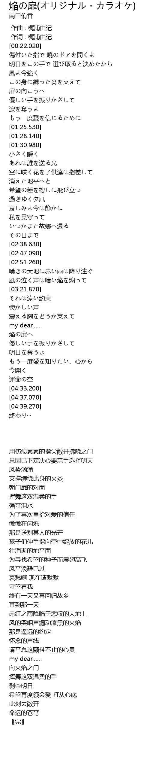 | [03:54.750] | 焔の扉へ |