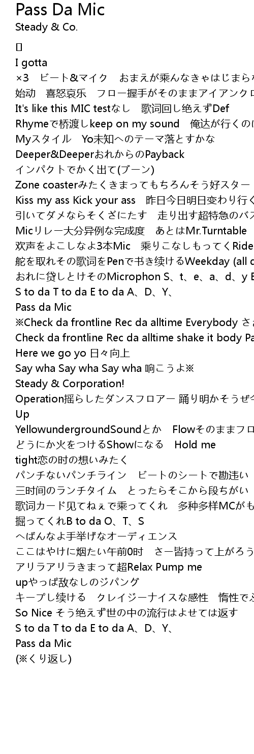 | 歌词カード见てねぇで乘ってくれ 多种多样MCがもってくぜ | |