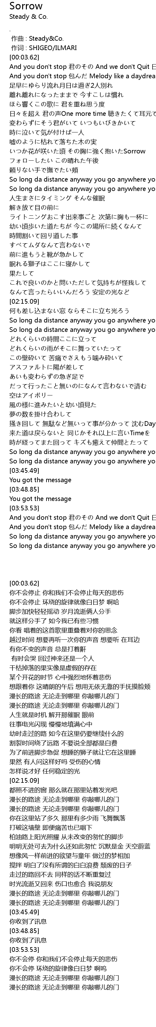 | [03:56.38] | And you don' t stop jūn And we don' t Quit rì Sorrow |