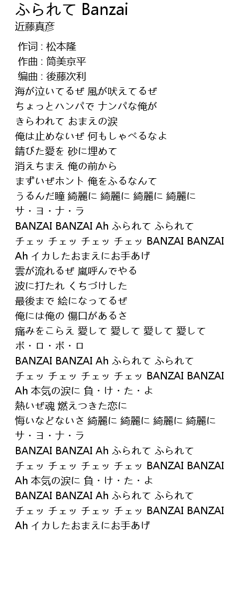 | [03:03.020] | BANZAI BANZAI Ah ふられて ふられて |