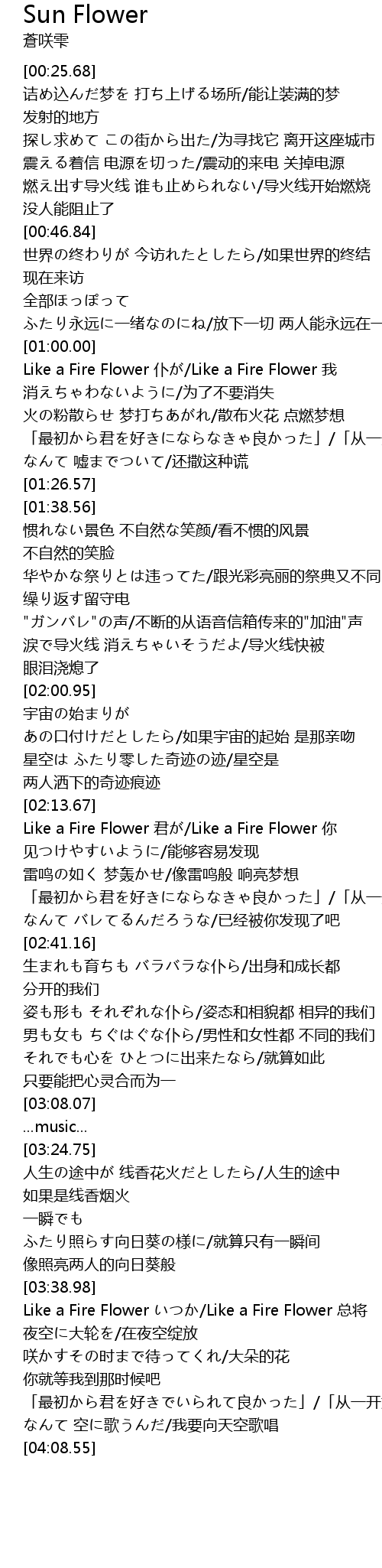 | [03:39.68] | Like a Fire Flower Like a Fire Flower zǒng jiāng |