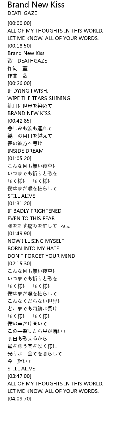 | [03:59.15] | ALL OF MY THOUGHTS IN THIS WORLD. |