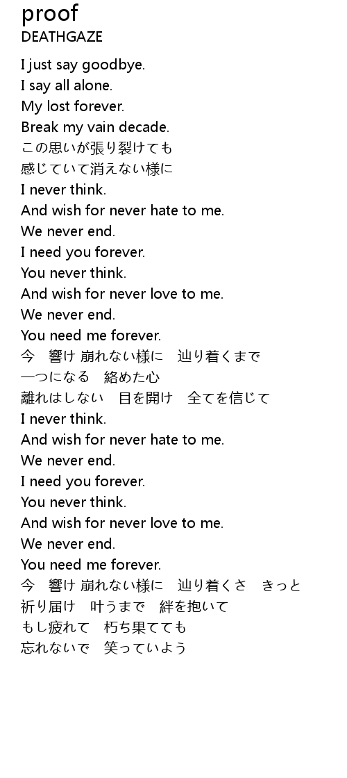 | 今 響け 崩れない様に 辿り着くさ きっと | |