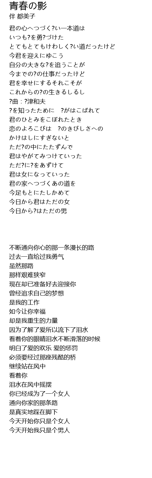 | [00:01.47] | 君の心へつづく?い一本道は |