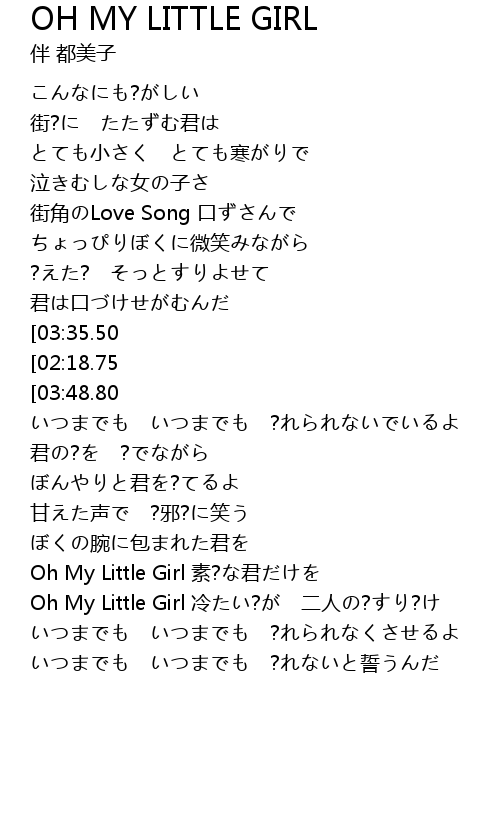 | [01:18.75][03:48.80] | Oh My Little Girl 二人黄昏に 肩寄せ?きながら |