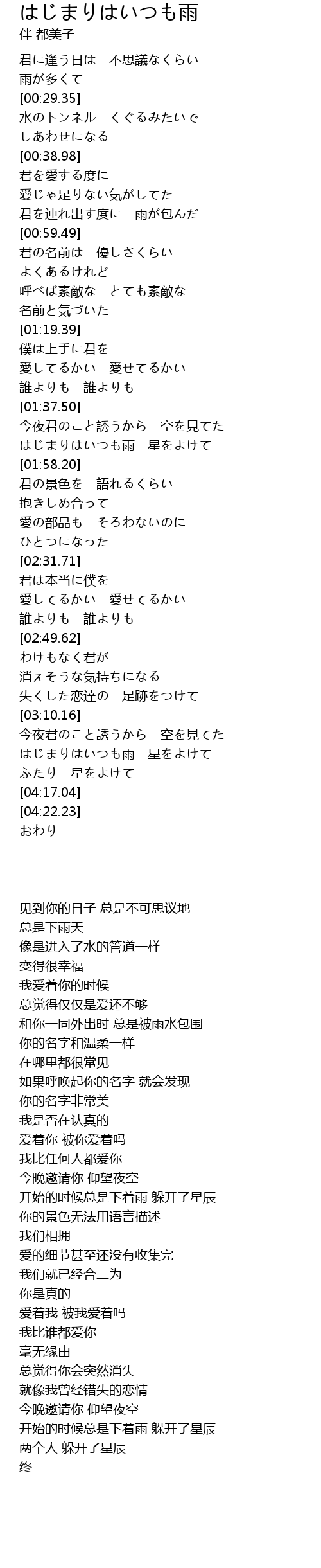 | [03:52.38] | はじまりはいつも雨 星をよけて |