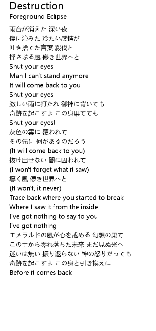 | 迷いは無い 振り返らない 神の怒りだっても | |