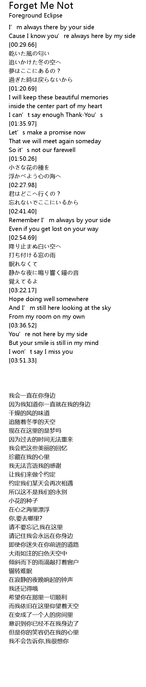 | [02:41.41] | Remember I’m always by your side |