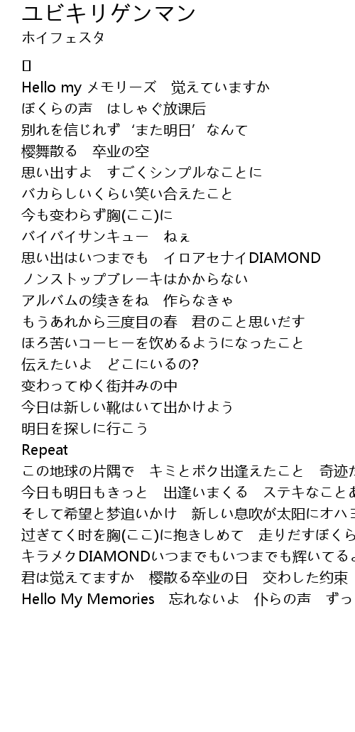 | Hello My Memories 忘れないよ 仆らの声 ずっと胸(ここ)に |