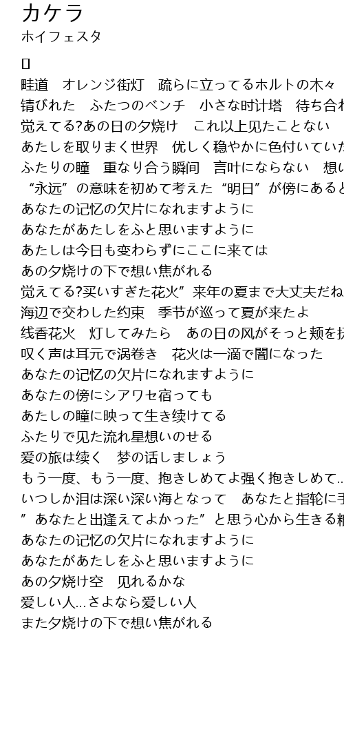 | 觉えてる?あの日の夕烧け これ以上见たことない きれいな空で | |