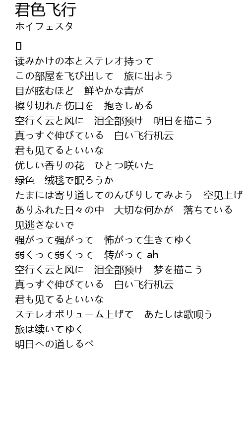 | 空行く云と风に 泪全部预け 明日を描こう | |