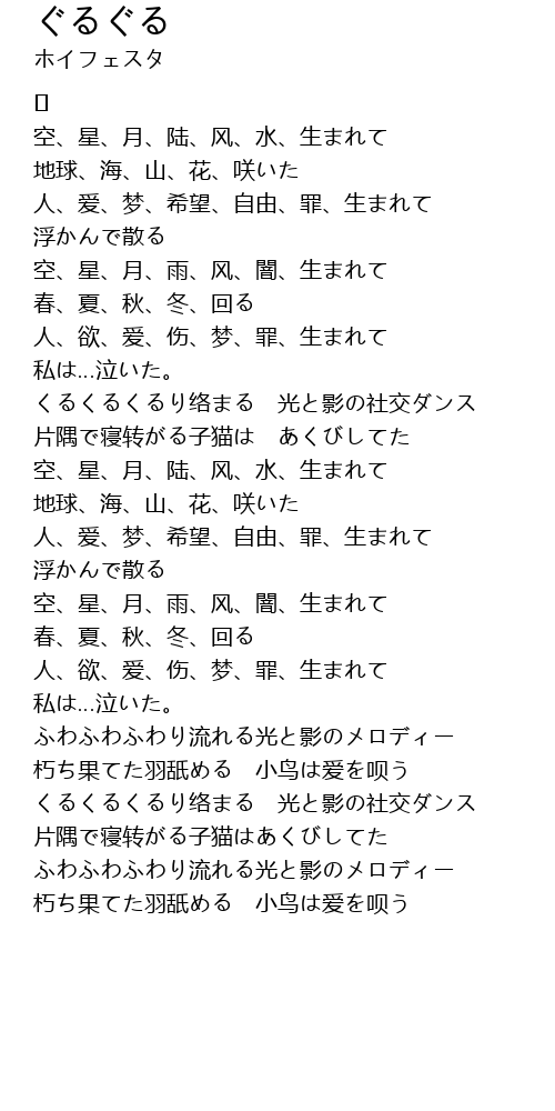 | Song | ぐるぐる |