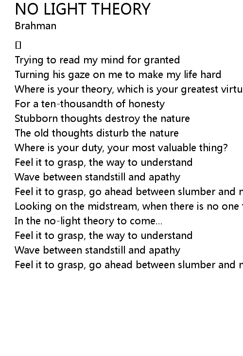| Song | NO LIGHT THEORY |